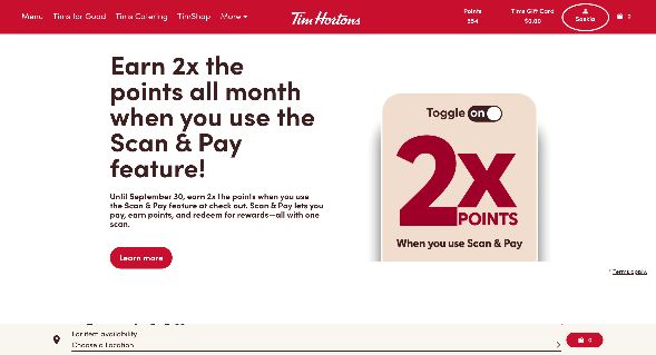 1. Visit timhortons.ca and sign in to your account.