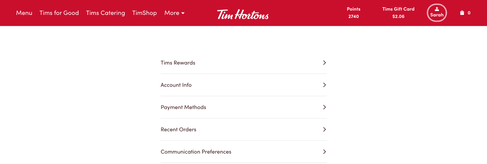 1. Visit timhortons.ca and sign in your account.