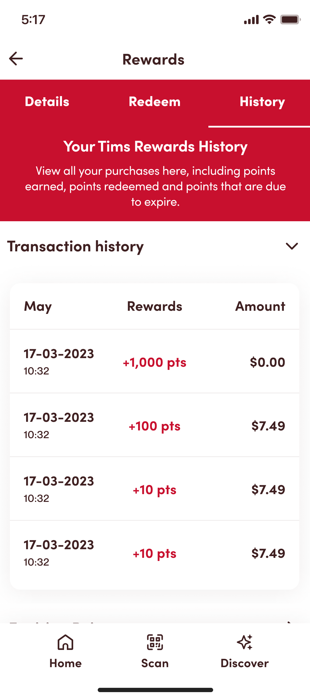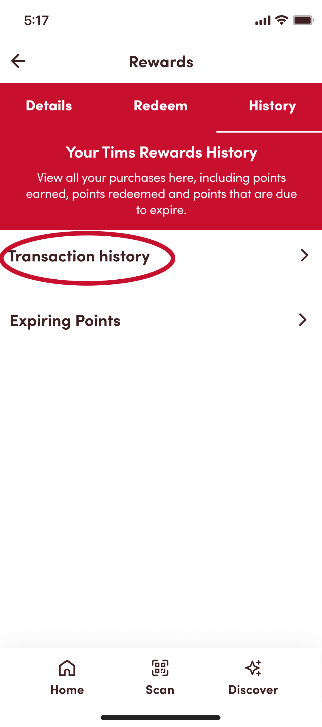 4. Select ‘Transaction history’. Here you’ll be able to review purchases, the points you’ve earned and the points you’ve redeemed.