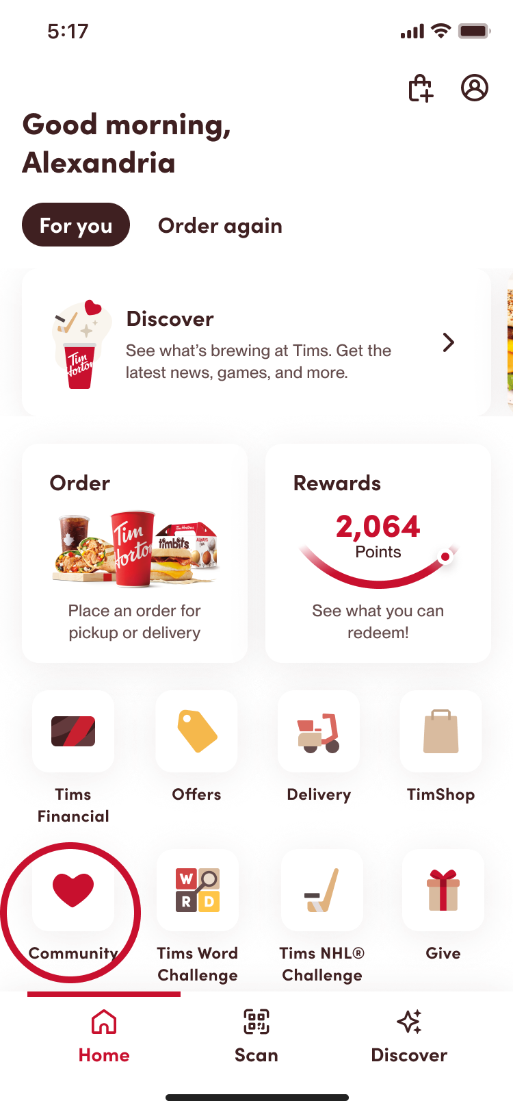 3. Tap the button labelled ‘Round Up for Tim Hortons Foundation Camps’. Moving forward, your order will be automatically rounded up to the nearest 10 cents to support Tims Camps and help children in your community!