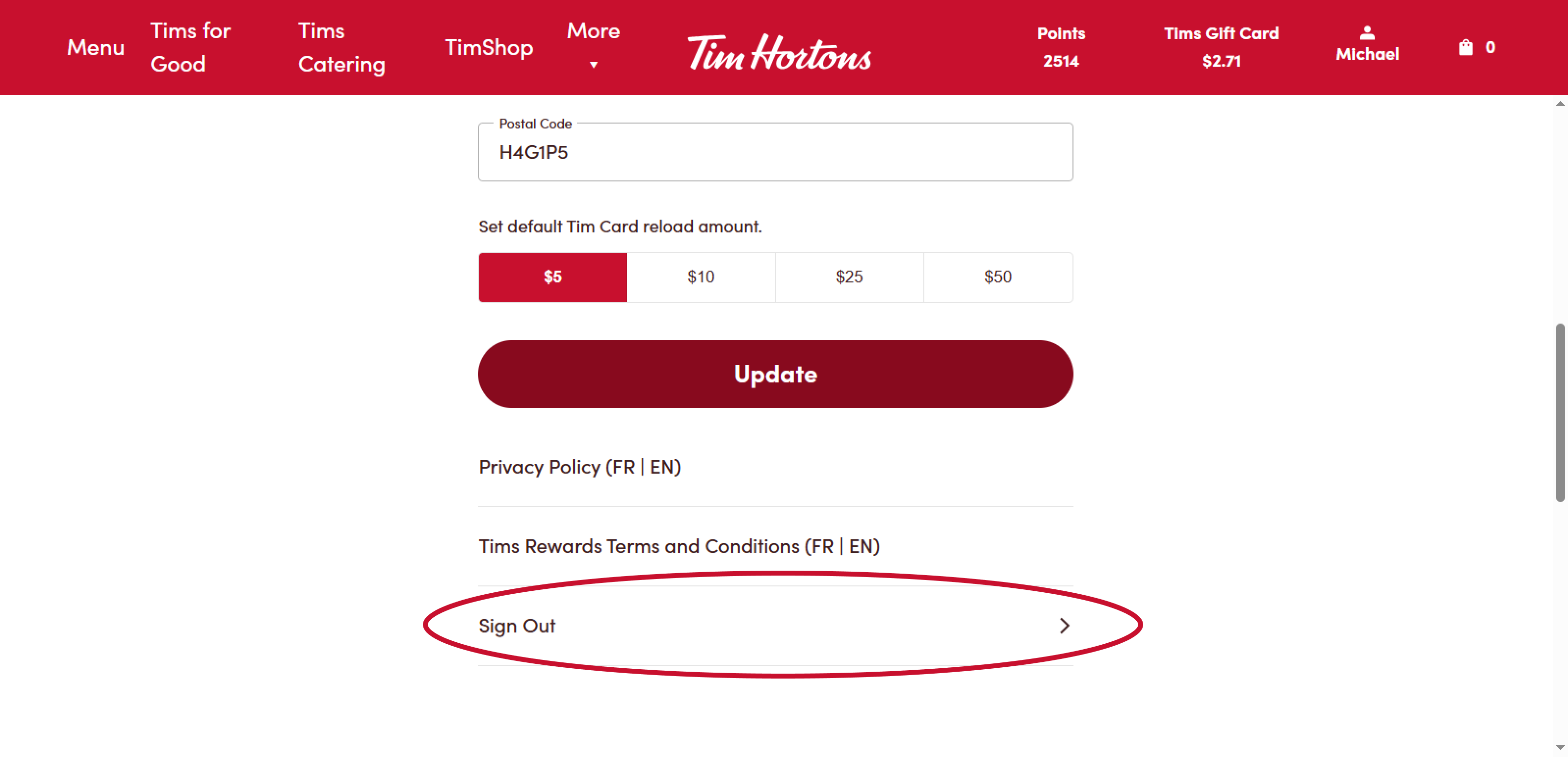 If you would like to log out of your Tim Hortons account, please follow the steps below.