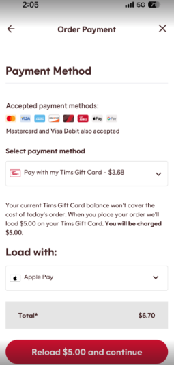 - You’ll be prompted to reload your gift card with more funds directly in the app.