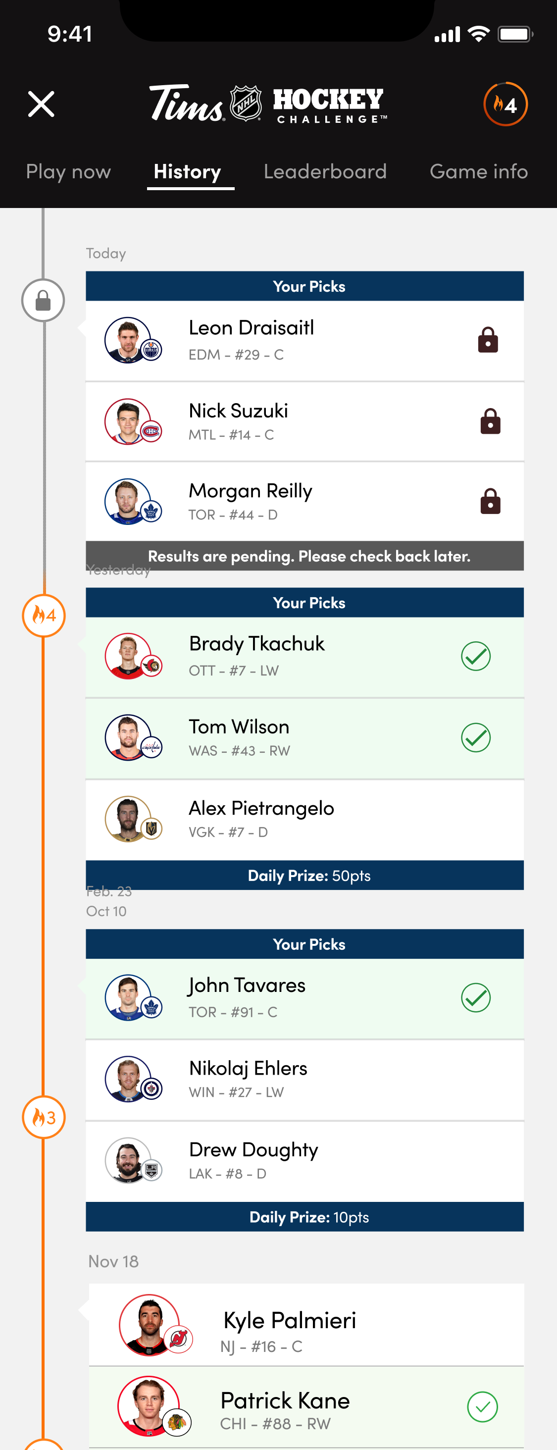 What do I win for making correct Picks in the Tims NHL® Hockey Challenge?