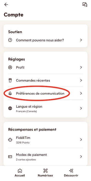 3. Sélectionnez Préférences de communication pour spécifier les types de communication que vous souhaitez recevoir.