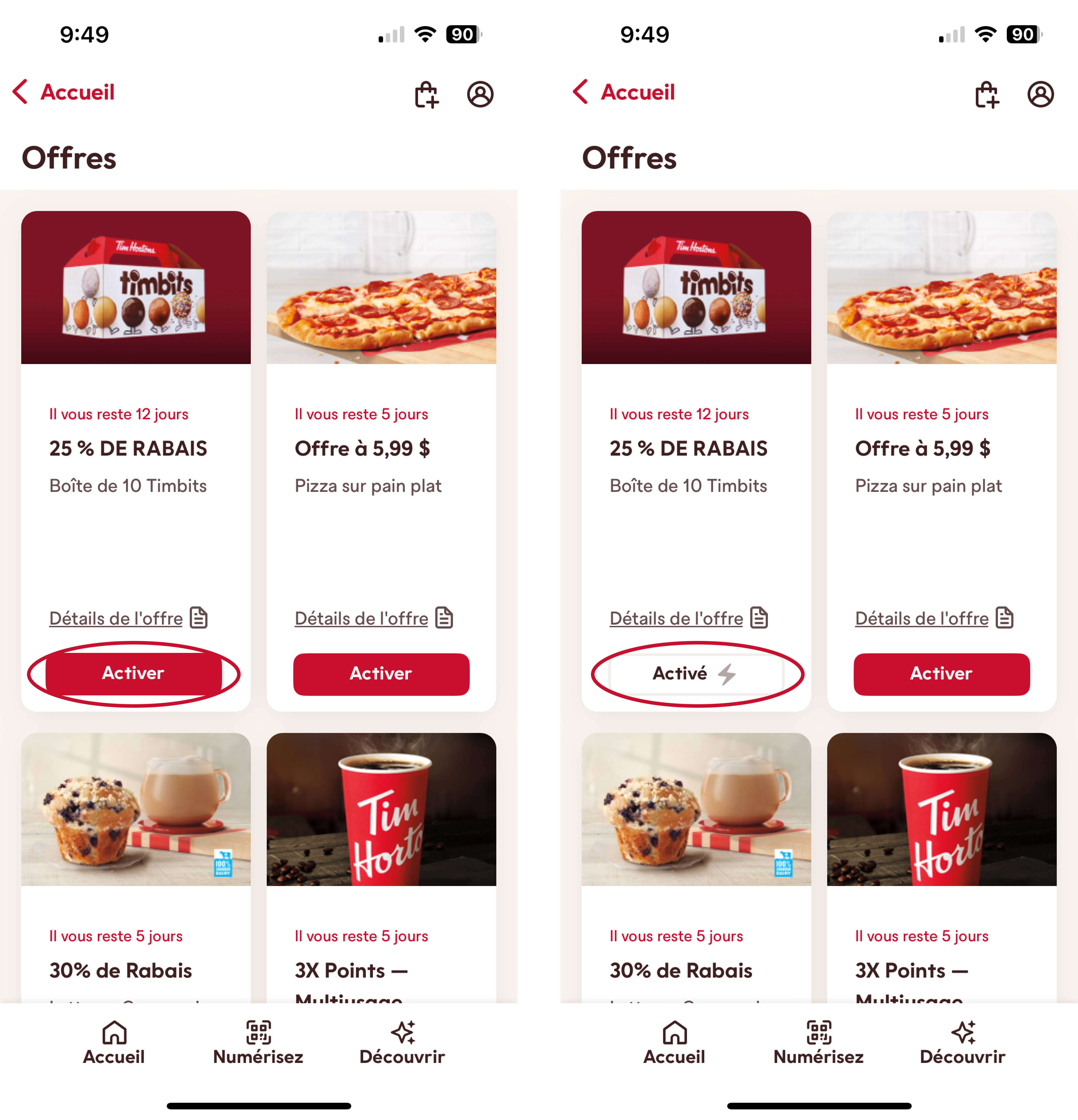 3. Activez l’offre qui vous intéresse. Le bouton « Activer » passera de rouge à gris une fois l’offre activée.