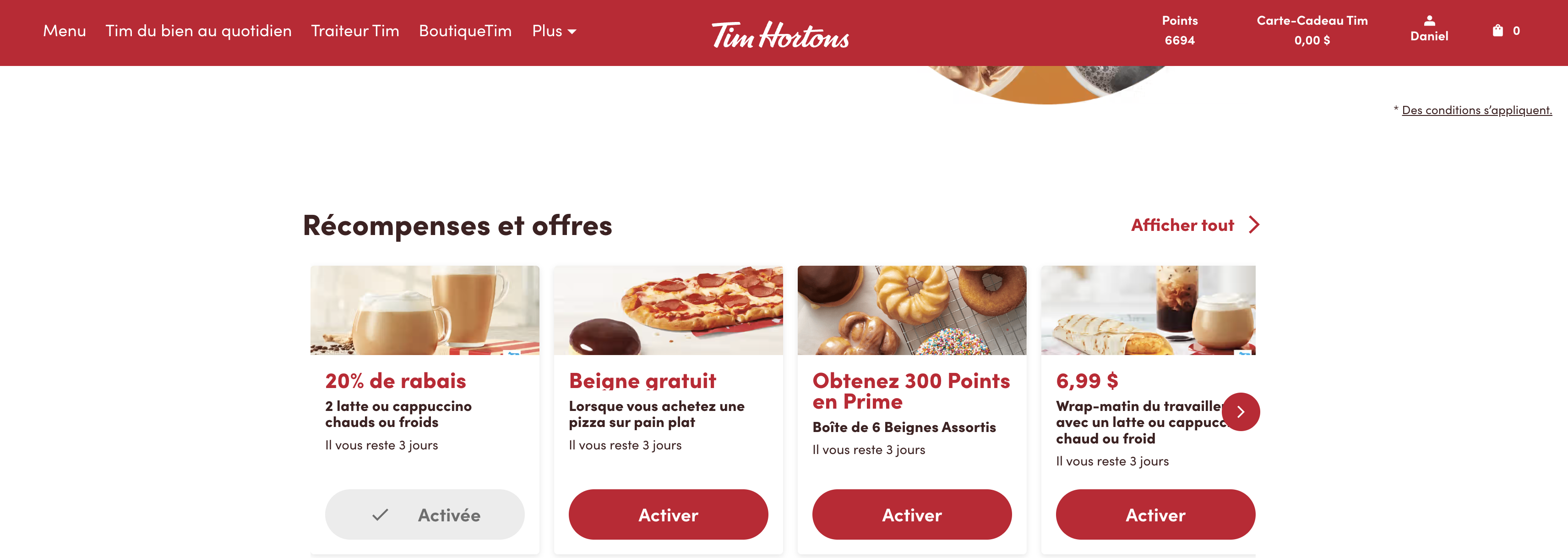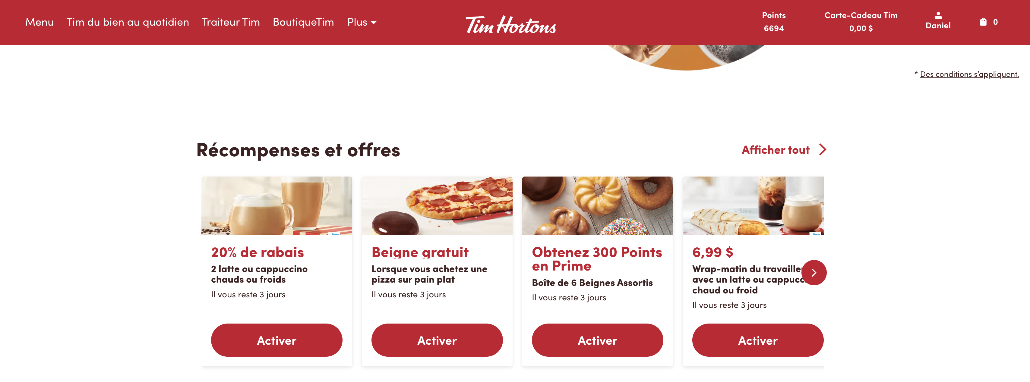 1. Rendez-vous au timhortons.ca et connectez-vous à votre compte.