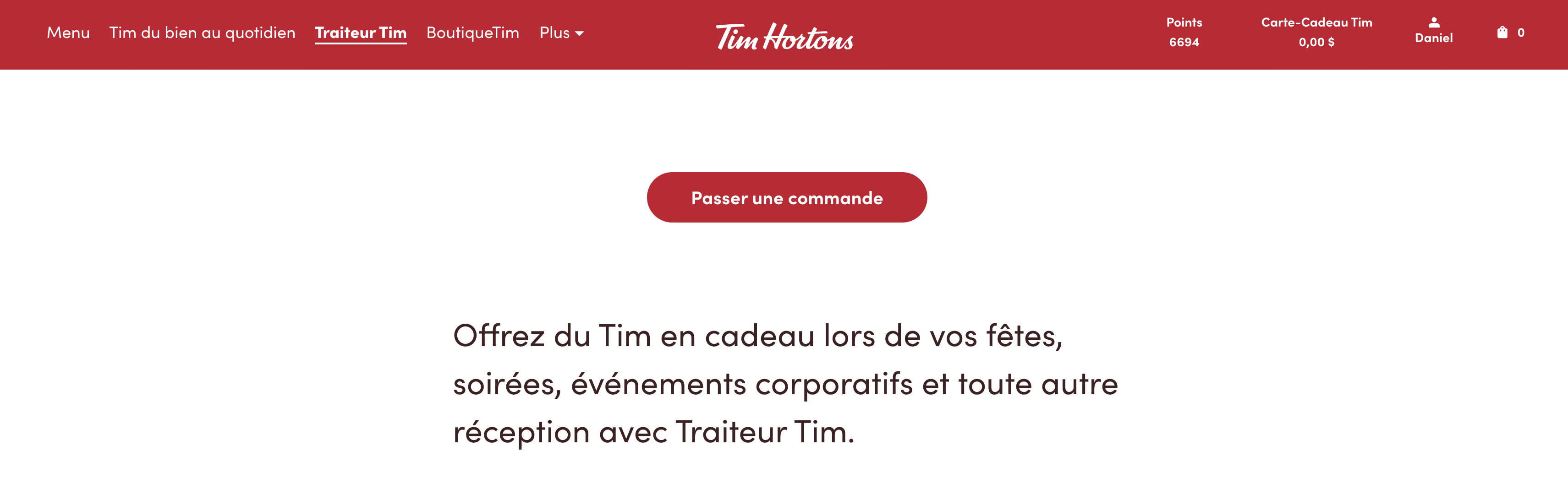 1. Consultez le site Web Traiteur Tim et sélectionnez « Passer une commande ».