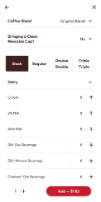 5. Personnalisez le produit à votre goût, puis sélectionnez le bouton rouge « Ajouter » au bas de l’écran.