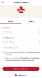 5. Appuyez sur « Inscription ». Nous vous enverrons un mot de passe à usage unique à l’adresse courriel que vous nous avez fournie. Suivez les instructions figurant dans le courriel, et voilà!