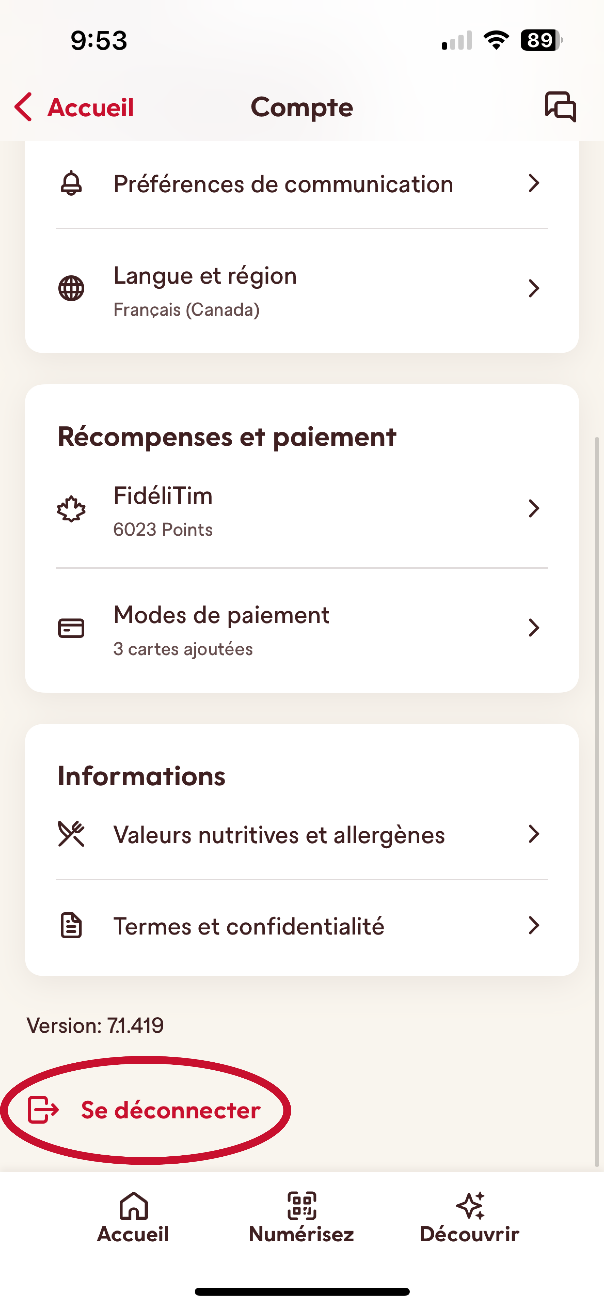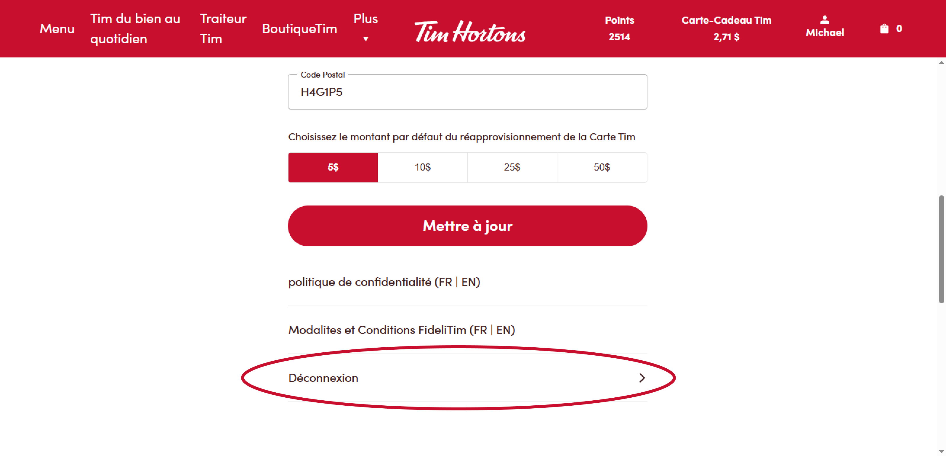 Si vous souhaitez vous déconnecter de votre compte Tim Hortons, veuillez suivre les étapes cidessous.