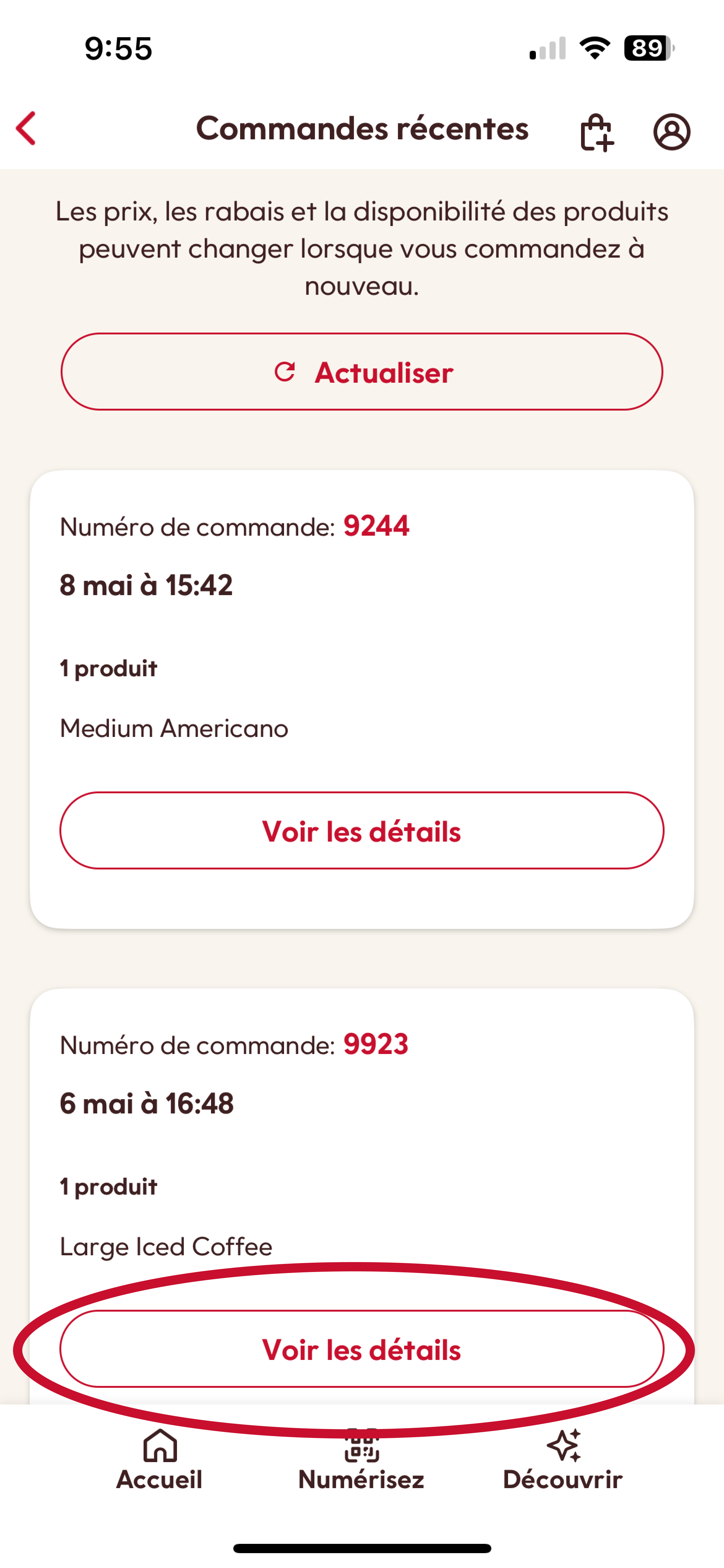 4. Trouvez la commande que vous cherchez dans la section « Commandes récentes ».