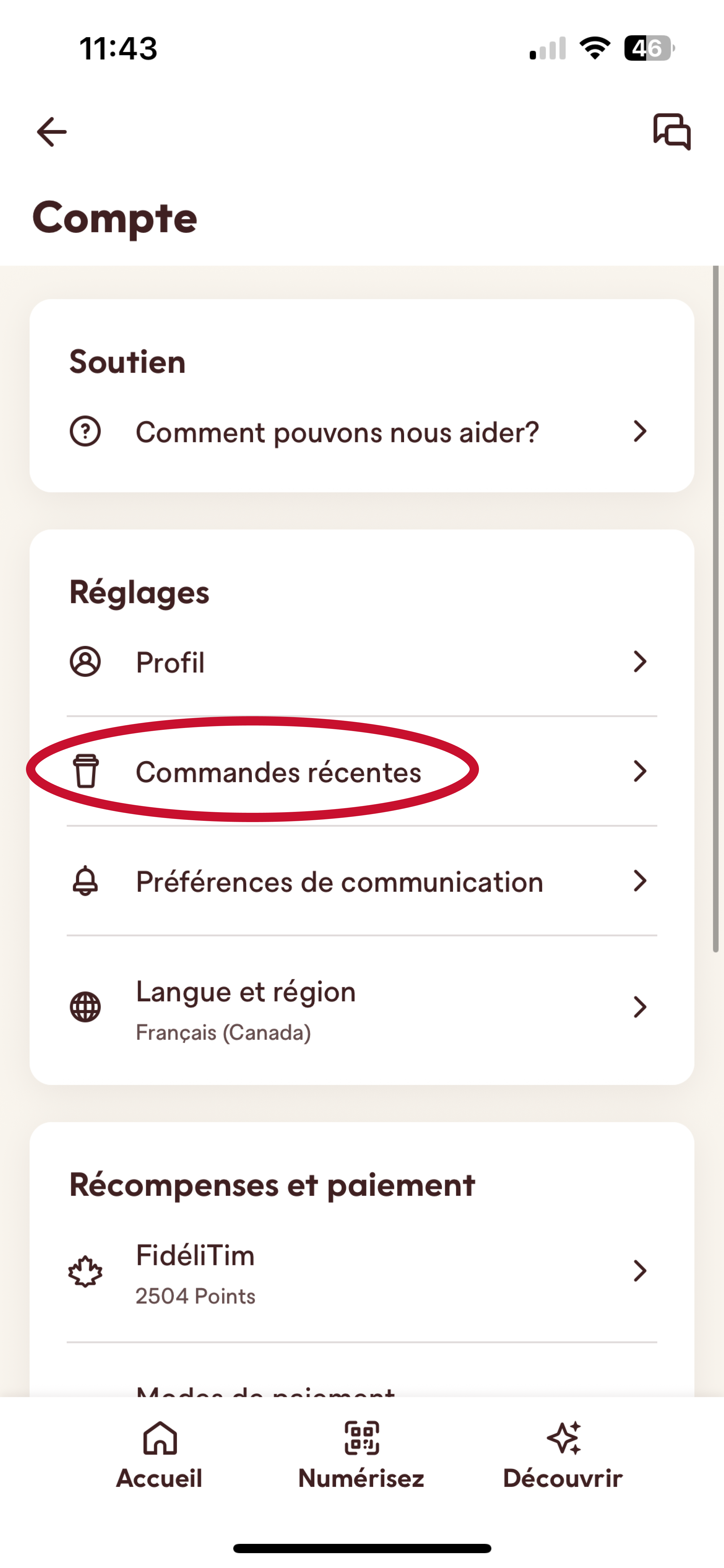 3. Puis, sélectionnez « Commandes récentes ».
