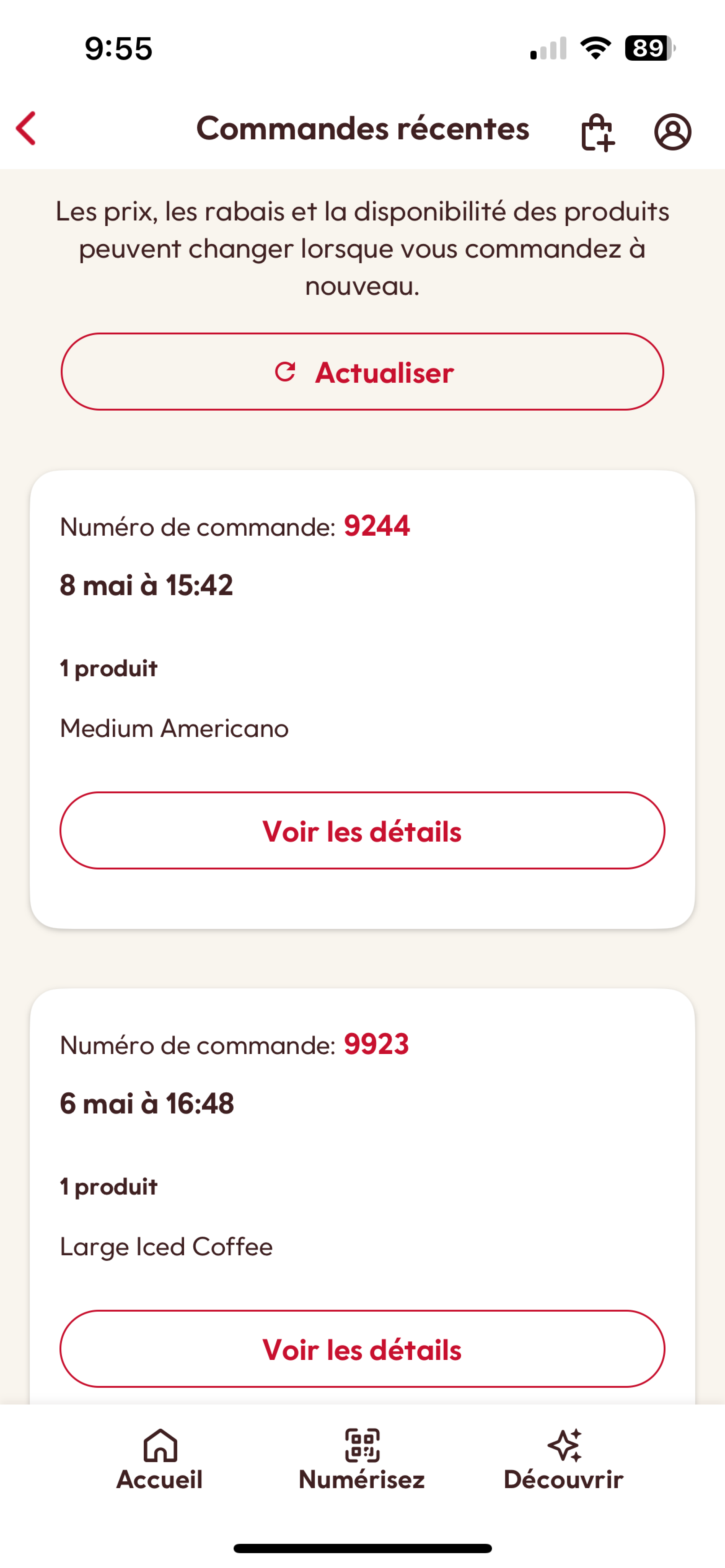 Lorsque vous passez une commande mobile, nous vous envoyons par courriel un reçu avec le détail de votre commande.