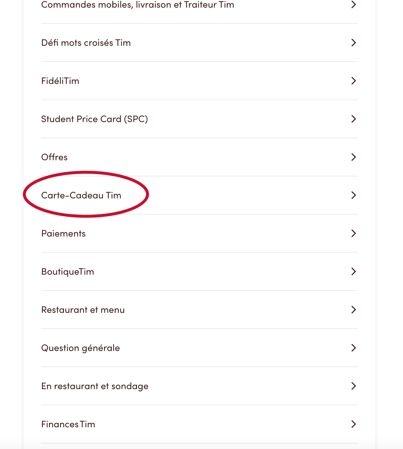 1. Cliquez sur « Cartecadeau Tim »